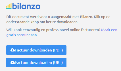 Als u uw klant een download link opstuurt en zelf de factuur laat downloaden (wat op zich heel wat voordelen biedt, want u weet dan precies of en wanneer hij/zij het factuur gezien heeft) kan deze er standaard voor kiezen om de PDF of de UBL versie te downloaden: