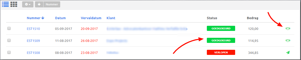 Goedgekeurde offertes verschijnen ook met een speciale aanduiding in je lijst van offertes.